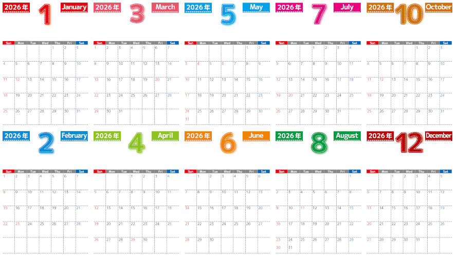 「これは実際に使ってみたい!」と思えるようなシンプルでかわいいカレンダーなだけでなく縦型・横型・日曜始まり・月曜始まりと書式もいっぱいあるので使いやすいものをダウンロードして印刷利用してみてください。(2026-0118)