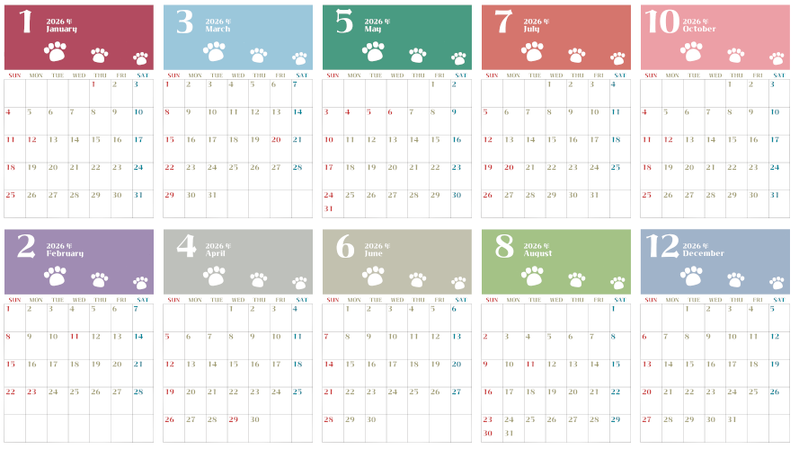 - 毎月違うイラストに施された猫の肉球がおしゃれ